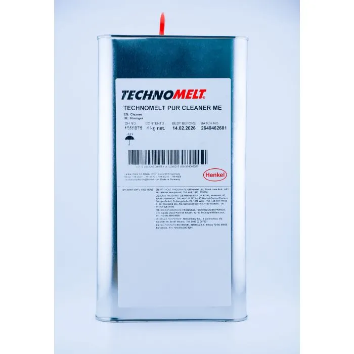 Henkel PUR Cleaner is a specially formulated cleaning agent manufactured by Henkel and designed for effective removal of uncured PUR adhesive residues from application units, tools and equipment. Henkel PUR Cleaner delivers reliable cleaning performance, preventing buildup and ensuring smooth operation of PUR adhesive systems. Developed for routine maintenance, it helps maintain production efficiency by