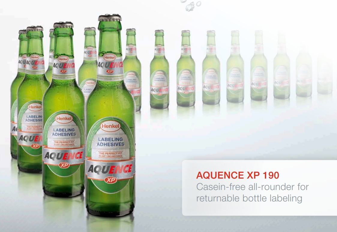 Aquence XP 180 is a high-performance water-based adhesive, manufactured by Henkel and specially formulated for reliable labelling of glass and refillable bottles. It offers strong wet tack and excellent machine compatibility to ensure smooth operation on high-speed automatic labelling systems. Designed to adhere effectively to a wide range of label materials including paper, foil, and