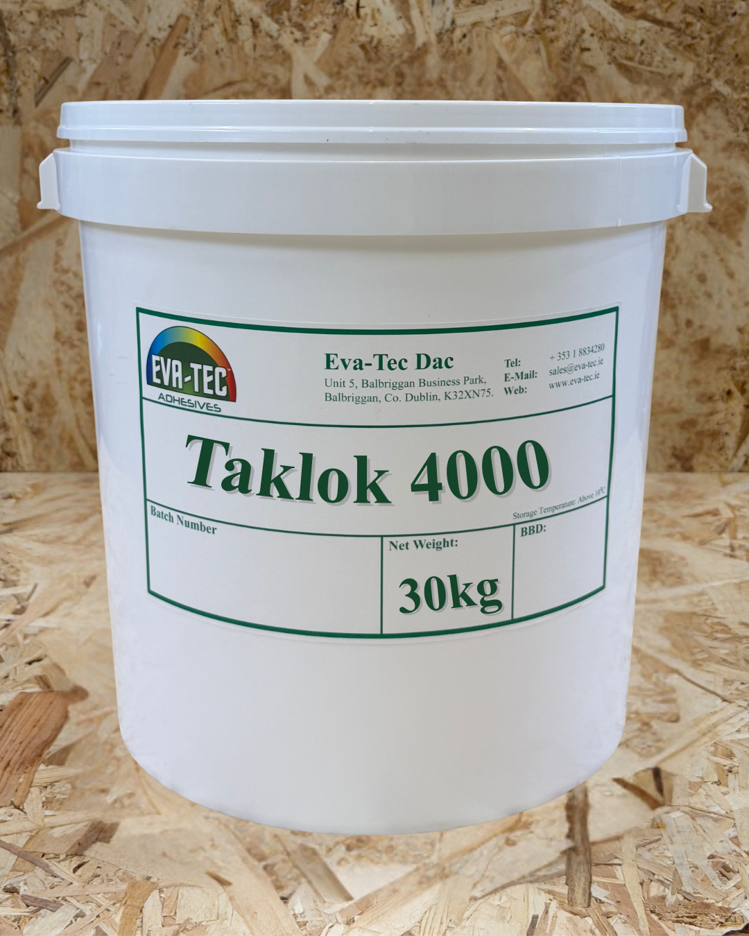 Our Taklok 4000 range, is a range of fast-setting, high-performance water-based adhesive manufactured by Eva-Tec and designed for high-speed carton production. It delivers reliable bonding on all carton board materials, including corona-treated PE. Developed for clean, consistent application, it performs consistently on multipoint gluing lines such as Jagenberg®, Bobst® and Diane®. Each product in our
